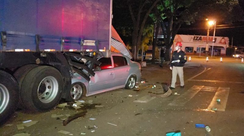 O Astra trafegava pela Avenida John Kennedy, quando ao se aproximar do semáforo do trevo da marginal Miguel Luiz Pereira, o motorista, de 43 anos, se perdeu no controle da direção. O veículo bateu violentamente em uma barraca de lanche e foi parar embaixo da traseira da carroceria de uma carreta Scania, que estava estacionada. A barraca ficou destruída.