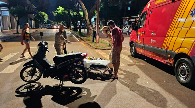 Mulher fica ferida após sofrer queda de moto em Campo Mourão