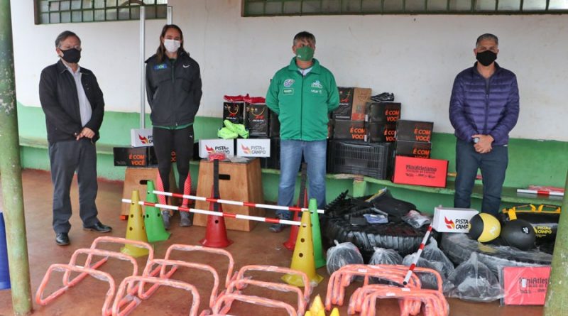 A Secretaria Municipal de Esportes adquiriu materiais esportivos entregues nesta quarta-feira (08) para a modalidade de atletismo. O investimento foi de R$ 15 mil, viabilizados pela Unimed através da Lei de Incentivo ao Esporte. O prefeito Tauillo Tezelli esteve presente no Estádio Municipal para recebimento dos materiais.