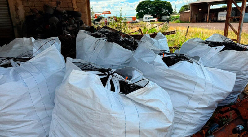 Foi concluído o mutirão de retirada de fiação solta na rede elétrica do Lar Paraná, em Campo Mourão. A ação foi realizada ao longo da última semana pela Copel e empresas de telefonia. Em cinco dias de trabalho, foram retiradas mais de 2,5 toneladas de cabos, o equivalente a cinco bags de sucata. Todo o material foi encaminhado ao pátio da Secretaria de Infraestrutura, Segurança e Mobilidade Urbana (Seimob) para destinação correta.