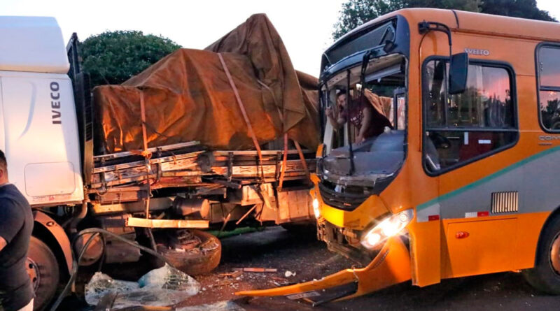 Um grave acidente de trânsito envolvendo um ônibus do transporte público coletivo urbano e um caminhão deixou ao menos três pessoas feridas na noite desta sexta-feira (27), em Campo Mourão. A colisão aconteceu no cruzamento da Avenida Paraná com a Rua Vereador Augusto Mendes dos Santos, no Jardim Nossa Senhora Aparecida.