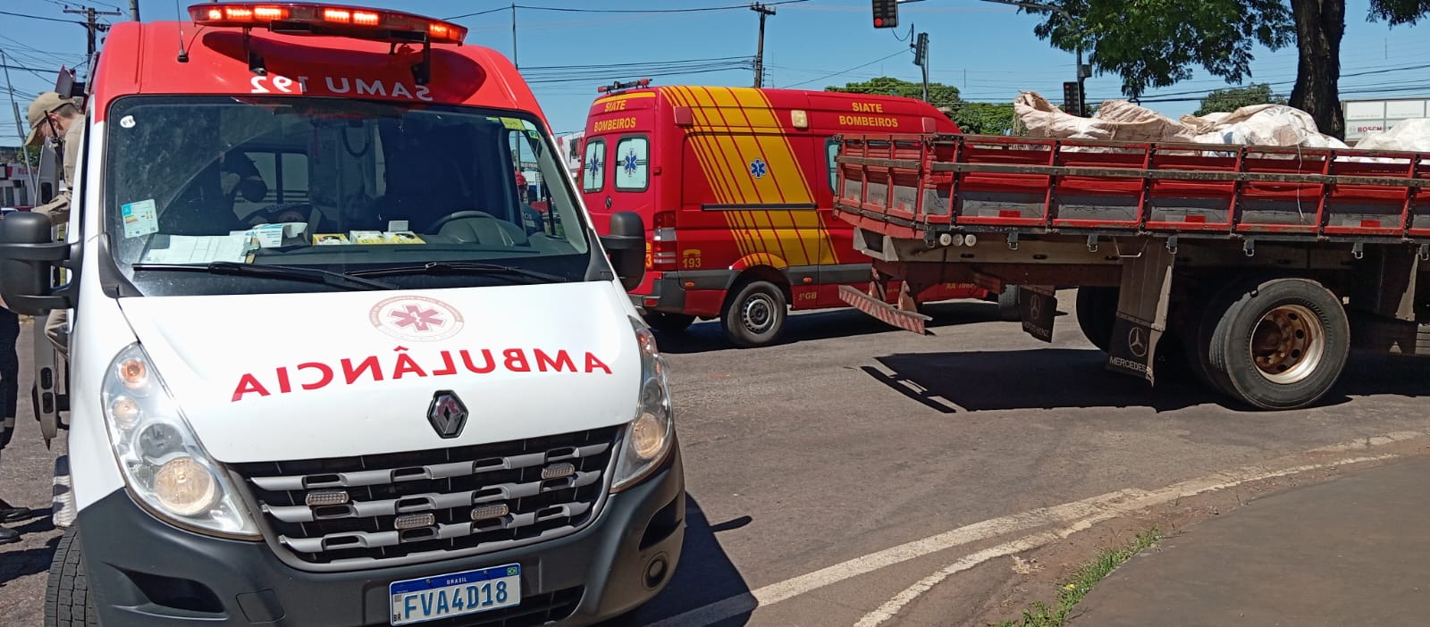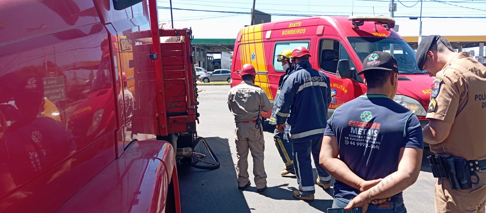 Mais um acidente de trânsito no início da tarde desta sexta-feira (15) envolvendo um caminhão e uma bicicleta por pouco não acabou em tragédia em Campo Mourão. A ocorrência foi registrada na Avenida Miguel Luiz Pereira, prolongamento da rodovia BR-487, semáforo de acesso à Avenida John Kennedy, no Lar Paraná.