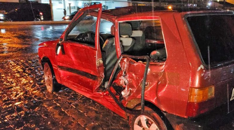 O motorista do Fiat Uno Way, de 26 anos, que trafegava pela Rua São Paulo, disse que o semáforo estava aberto para ele e que o Fiat Uno Mille, de cor vermelha, que trafegava pela perimetral, teria avançado o sinal. O Uno Way colidiu na lateral do Mille, onde estavam três pessoas: o motorista, de 25 anos, a mulher de 64  anos e outra mulher que pegou um mototáxi e foi embora.