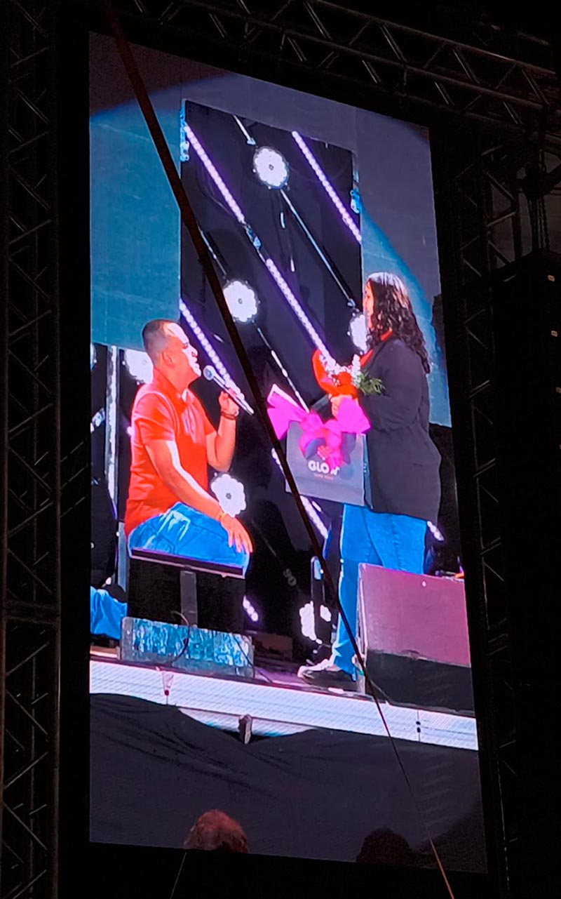 O pedido de casamento no palco foi uma surpresa preparada com cuidado. O noivo contou à reportagem da TRIBUNA que conseguiu entradas para o camarim da dupla, onde compartilhou sua história com os artistas. “Falei com os cantores, contei da nossa história e eles. Como são muito românticos com as esposas também, toparam a ideia e disseram que conseguiriam sim e deram essa oportunidade. O produtor que pegou meu nome me disse ali o momento de ir”, detalhou.