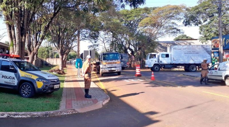 PM orienta para nova sinalização na Avenida José Tadeu Nunes, em frente ao Batalhão