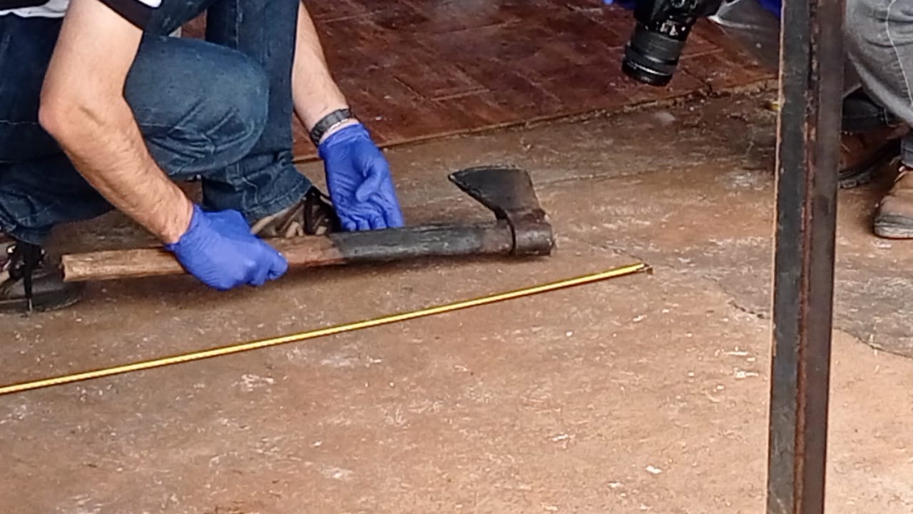 A polícia chegou ao autor após uma denúncia anônima. “Recebemos denúncias anônimas no 190 de que haveria conhecimento da autoria do crime. Que o mesmo estaria cobrindo as manchas de sangue em sua residência com cal e que o objeto estaria na casa. Foi repassado a nós o nome e endereço do suposto autor. Deslocamos para verificar e, chegando ao local, constatamos o cal no quintal, que já levantou suspeitas e uma machadinha utilizada no crime”, comentou o tenente Leniel, da Polícia Militar. Questionado sobre o fato, o autor confessou que matou a vítima por causa de um desentendimento pelo furto de fios de cobre.