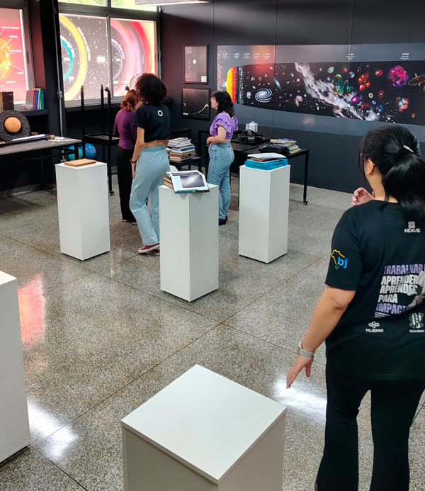 “Em 2022, quando o Polo Astronômico foi fundado, o professor Rodolpho Caniato doou muitos materiais do seu acervo, como livros, experimentos, fotos, e hoje, depois de conquistar uma sala para exposições astronômicas, vamos finalmente realizar a exposição com o material que o professor Caniato nos doou”, celebrou a professora Camila.