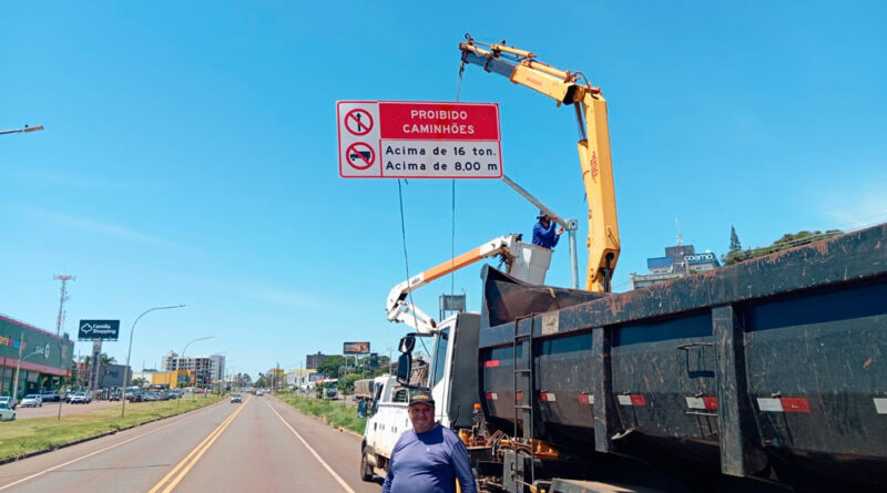 Prefeitura instala novas sinalizações para desviar tráfego pesado do centro