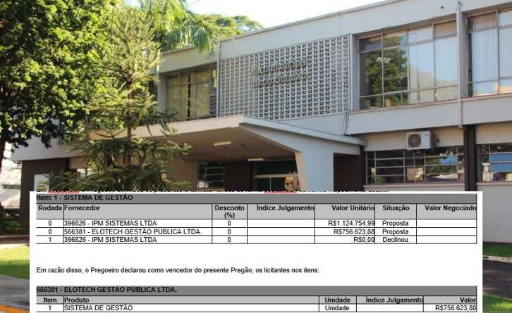 A Prefeitura de Campo Mourão realizou licitação para contratação de software de Gestão Pública. Duas empresas participaram: no preço, a vencedora foi a Elotech, de Maringá-PR, que também faz os municípios de Maringá, Ponta Grossa e Umuarama, entre outros, com uma proposta de R$ 756.623,88 por ano.