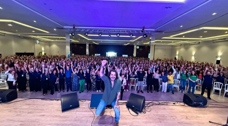 Na palestra “Sem Medo do Futuro”, o cantor Marco Túlio mesclou música ao vivo com reflexões sobre coragem e a capacidade de reescrever a própria história. “Sou filho e esposo de pedagoga e por isso convivo com esse universo da Educação. E os educadores hoje em dia assumem muito mais que a função de ensinar. Venho celebrar esses profissionais, saudar a relevância desse trabalho e trazer um pouco de música para ajudar a refletir sobre a vida”, sintetizou o artista, que elogiou a estrutura da cidade ao prefeito Douglas.