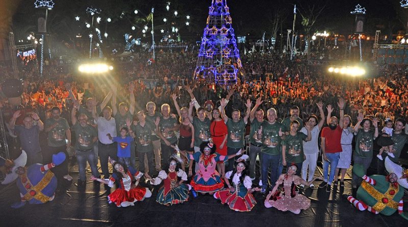 Com a presença de público recorde, foi aberta na noite deste sábado (30/11) a programação cultural do projeto “Campo Mourão – Cidade Natal”. Os organizadores estimam que aproximadamente 25 mil pessoas participaram do evento marcado por momentos de magia e encantamento para todas as idades e que teve como destaque a apresentação pela Associação Sou Arte do espetáculo de teatro, circo e dança “As Três Chaves do Natal”, com a chegada do Papai Noel.