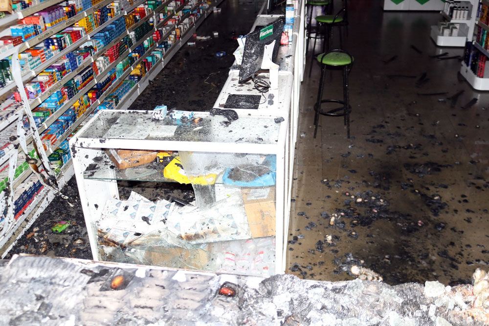 Com o deslocamento rápido das equipes, as chamas foram contidas ainda no estágio inicial, impedindo que se espalhassem por toda a loja. O foco do fogo ficou concentrado próximo ao quadro de distribuição de energia, atingindo medicamentos, entre outros itens. Com o calor, balcões de vidros também ficaram destruídos.