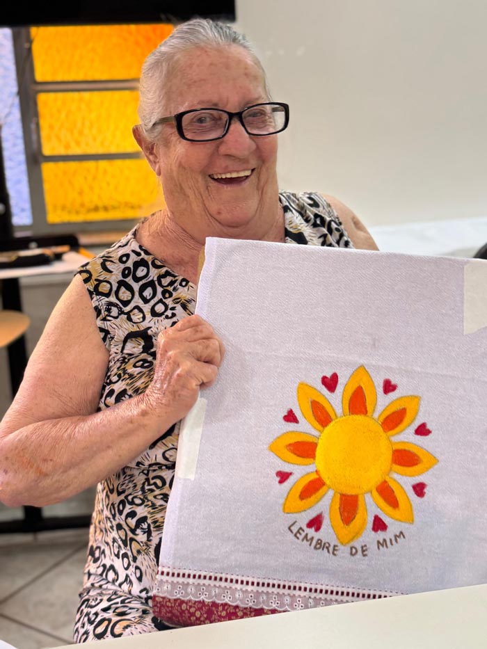 Outras atividades também estão sendo desenvolvidas no decorrer do mês, envolvendo tanto os colaboradores da instituição quanto os próprios idosos assistidos no local. Entre elas, foi realizada uma oficina de artesanato, quando os idosos fizeram pintura de panos de prato. Além disso, uma roda de conversa específica com familiares e amigos do público atendido também foi feita no local.