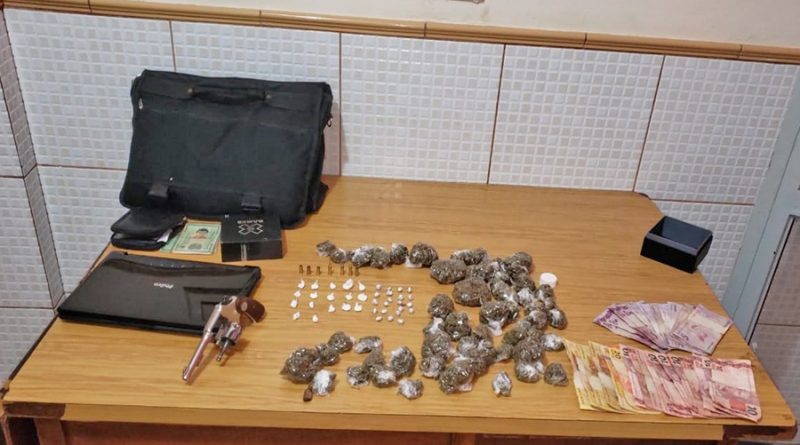 A ação dos policiais resultou na apreensão de um revólver calibre 22 com três munições intactas e quatro deflagradas; 17 buchas de cocaína; 21 pedras de crack; 57 buchas de maconha (270 gramas); 1 netbook furtado; e R$ 335,00 em espécie.