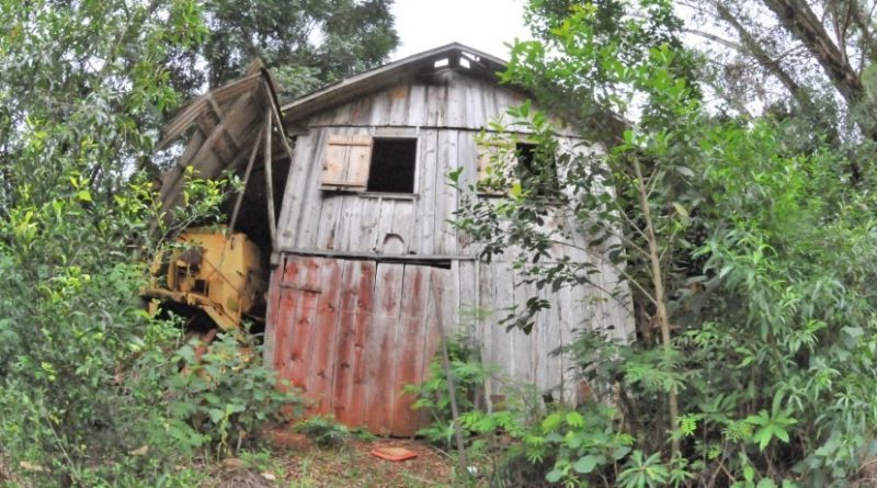 A propriedade faz parte do Sítio São João, localizada entre Campo Mourão e Mamborê. São três casas de madeira, antigas. Numa delas, a sensação é que algo aconteceu. E, os donos, saíram em fuga. Lá, ainda estão cama, cadeiras, armário, pia, fogão e até uma magrela. Outros dois imóveis, que se desmancham com o tempo, eram armazéns para soja e ferramentas. Ao redor, quatro velhas colheitadeiras. Um caminhão FNM, da Fiat. Restos de implementos agrícolas. Ferros. Pneus. Tudo o que não tem mais valor.