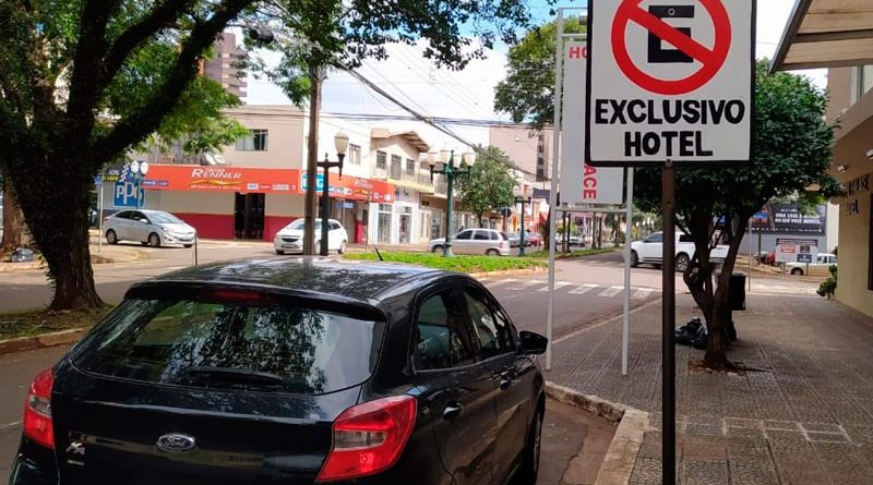 Quem transita pela área central de Campo Mourão percebe que alguns hotéis e farmácias ainda mantém placas na calçada indicando estacionamento exclusivo para clientes. Essa “reserva” de vaga no espaço público, porém, não tem nenhum valor legal. A regulamentação que disciplinava vagas de estacionamento exclusivas para farmácias e hotéis deixou de ter validade desde 2008, com alterações feitas no Código Brasileiro de Trânsito. Ou seja, qualquer motorista pode fazer uso do estacionamento.