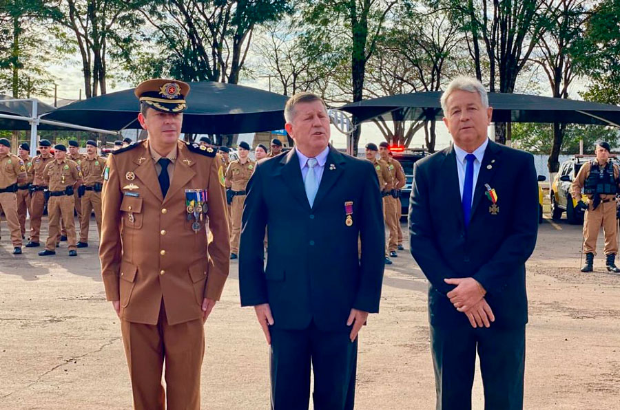 A cerimônia contou com a presença de diversas autoridades civis e militares, além de familiares e membros da comunidade local. Durante a solenidade, foram realizadas homenagens aos policiais que completaram 30 anos de efetivo serviço na PMPR, em que receberam a medalha Policial Militar de Ouro.