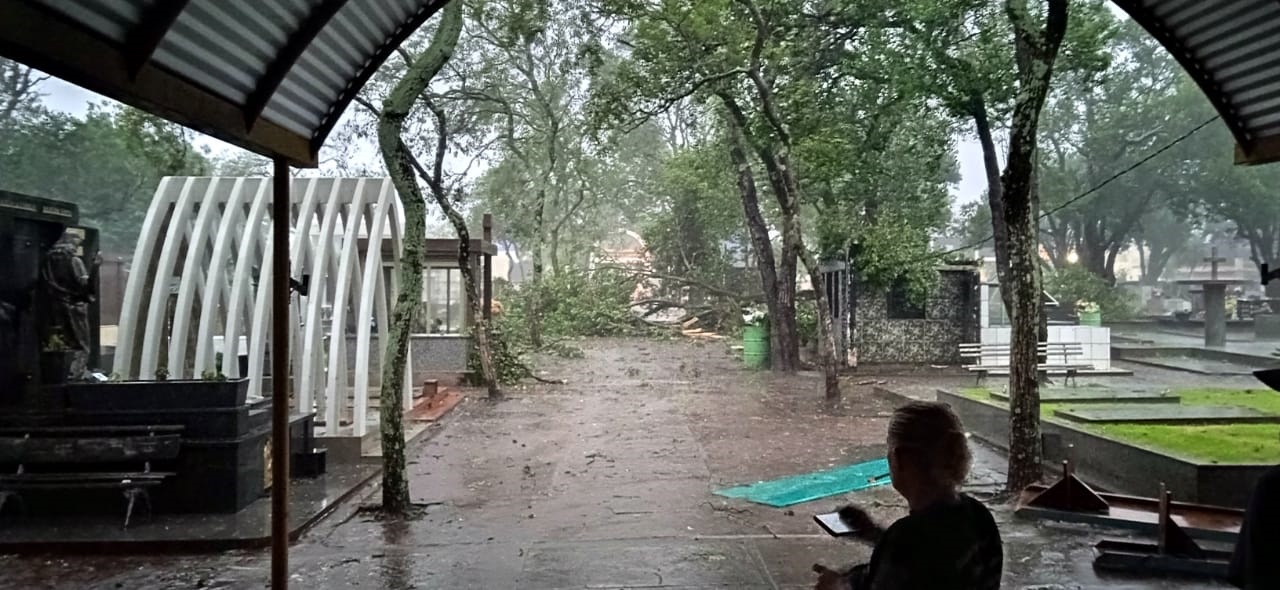 Na área central, até mesmo o prédio da prefeitura foi atingido. Estilhaços de coberturas próximas foram arremessados contra as vidraças da estrutura. De acordo com o Sargento Brero, da guarnição dos Bombeiros, a unidade trabalha com a hipótese de um tornado.