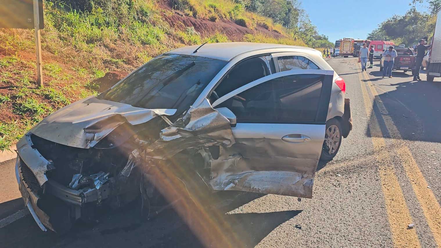 O acidente envolveu três veículos, sendo um VW Gol, ocupado por uma família (pai, mãe e filho), um Ford Ka e um caminhão prancha. Além das duas vítimas fatais, a passageira do Gol também ficou ferida, assim como o condutor do Ka, que foram socorridos por equipes do Corpo de Bombeiros e Samu de Campo Mourão. O motorista do caminhão não sofreu ferimentos.