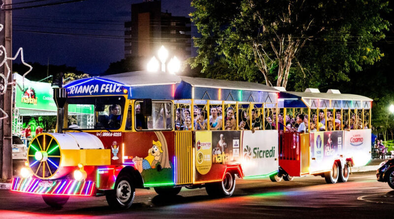 O trenzinho de Natal da Associação Comercial e Industrial de Campo Mourão (Acicam) volta a circular pelos bairros da cidade, integrando as ações da campanha “Campo Mourão – Cidade Natal”. Paralelamente, outro trenzinho contratado pela entidade empresarial realiza passeios pela região central do município.
