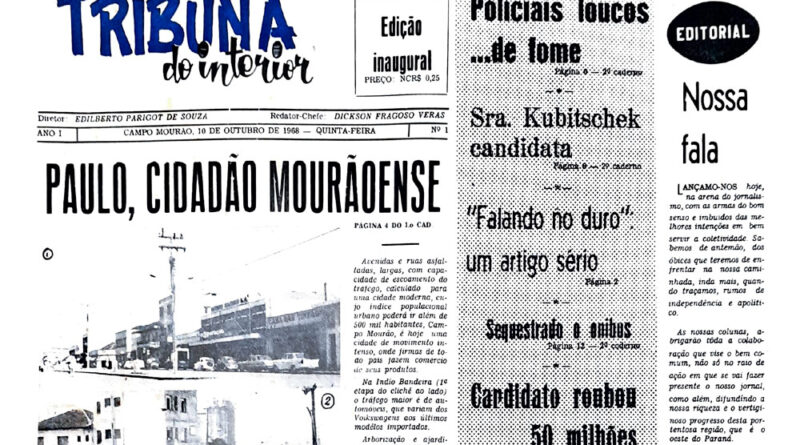 Nesta segunda-feira, 10 de outubro, data do aniversário dos 75 anos de Campo Mourão, o jornal Tribuna do Interior completa 54 anos de existência. “Fazer jornalismo pluralista e apartidário atualmente tem sido uma guerra diária. O público está polarizado como nunca. Além disso, a pandemia da Covid-19 e econômica a qual atravessa o País, criam a tempestade perfeita”, analisou o diretor do jornal Nery José Thomé. Confira no final da matéria o PDF da primeira edição.