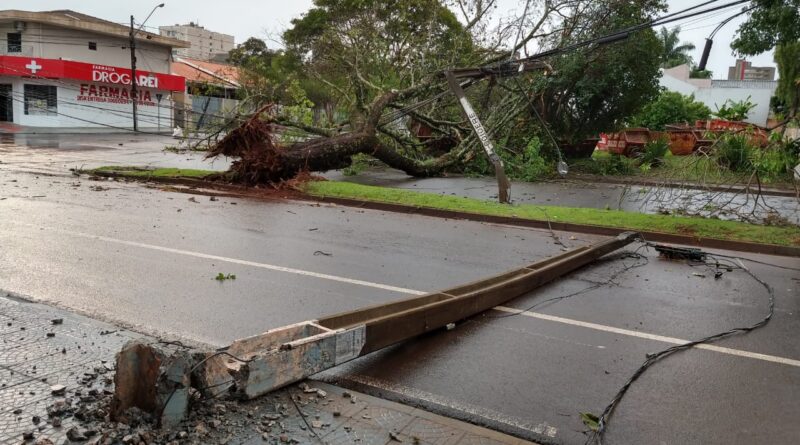 Ventos fortes derrubam árvores e quebram postes na área central de Campo Mourão
