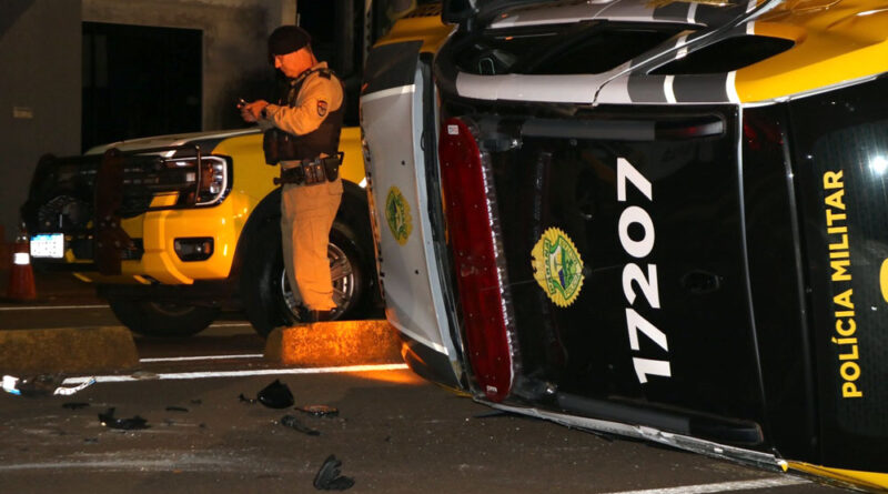 Viatura da PM tomba após colisão com Jeep Renegade na Perimetral de Campo Mourão