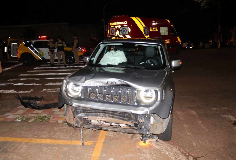 Jeep Renegade cruzava a Rua Panambi com o sinal verde quando atingiu a lateral da viatura da PM, que seguia com sirene ligada para atender ocorrência