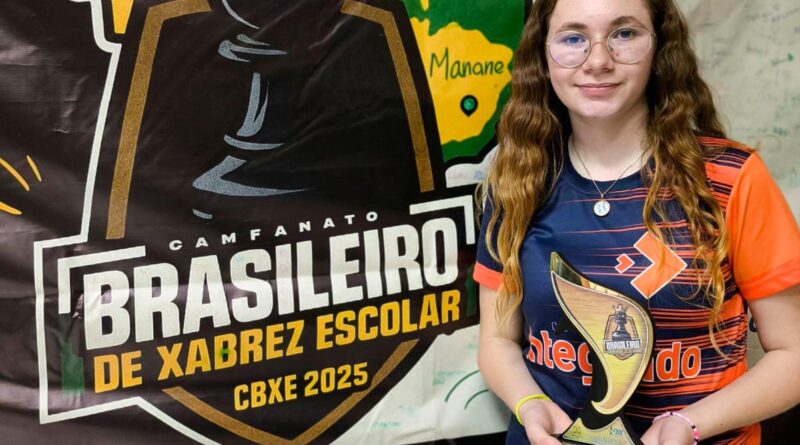 A enxadrista mourãoense Isis Eduarda Roeder dos Santos trouxe para Campo Mourão o título de campeã brasileira Sub-14, conquistado no Brasileiro Escolar de Xadrez 2025, disputado nesse fim de semana em Caxambu (MG). Além de vencer a competição nacional com 5,5 pontos de 6 possíveis, ela se consagrou campeã invicta. “Estou muito feliz e espero continuar conquistando muitos títulos”, expressou com alegria.
