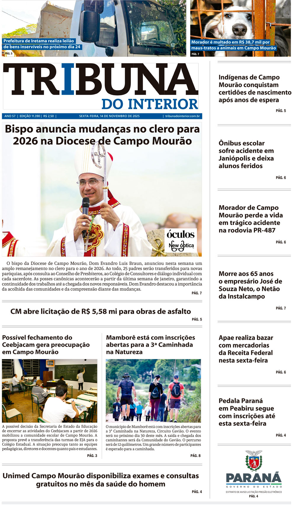 Bispo anuncia transferência de padres na Diocese de Campo Mourão para 2026