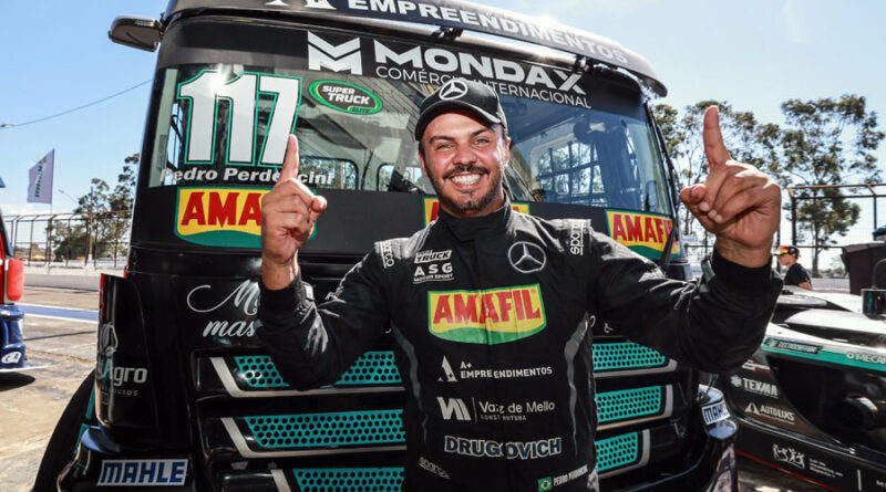 “É uma alegria imensa fazer parte dessa equipe e compartilhar essa conquista com todos que acompanham minha evolução. Estou muito feliz com essa pole, que espero seja a primeira de muitas. Agradeço a Deus por tudo que tem acontecido na minha vida e à equipe que não mediu esforços para me entregar um ótimo caminhão, me passar todas as informações necessárias e me ajudar a alcançar esse resultado. Amanhã vamos com tudo em busca de mais pódios”, destacou Perdoncini, que ostenta em seu caminhão as marcas da Amafil, Construtora Vaz de Melo, Drugovich Auto Peças, A+ Empreendimentos e Mondax Comércio Internacional.