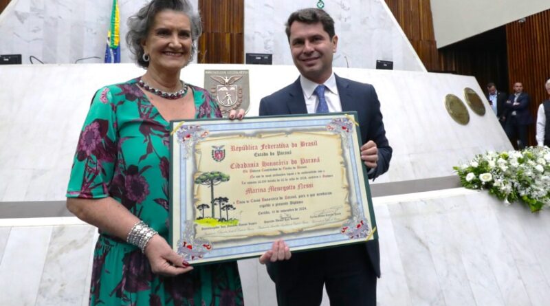 Destaque nacional no cenário da arquitetura, design e decoração de interiores, a gaúcha Marina Menegotto Nessi é a mais nova Cidadã Honorária do Estado do Paraná. O título foi entregue durante uma solenidade realizada na Assembleia Legislativa, na noite desta segunda-feira (18), por iniciativa do deputado Alexandre Curi (PSD), 1º secretário, enaltecendo a trajetória da homenageada, idealizadora da mostra CASACOR, que neste ano chegou a sua 30ª edição.