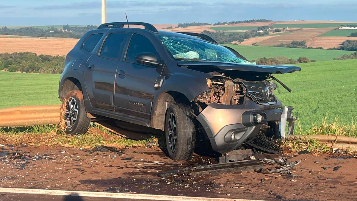 A batida ocorreu por volta das 7h, horário de grande fluxo na rodovia. Com o impacto, o motor de um dos veículos, um Volkswagen Virtus, foi arrancado. Uma Renault Duster também teve a parte dianteira completamente destruída, enquanto o terceiro carro sofreu danos na traseira. A carreta envolvida permaneceu na pista e também foi atingida.