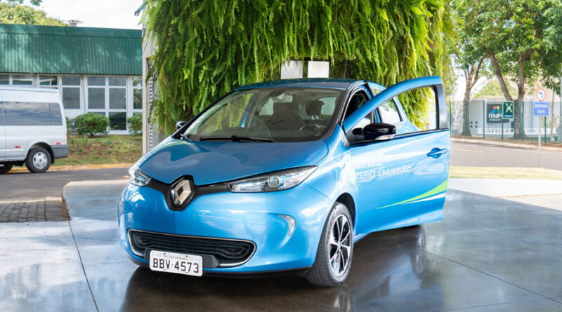 O veículo Renault Zoe, ano 2018, que pertenceu à frota da Binacional, está em ótimas condições e conta com aproximadamente 29 mil km rodados.