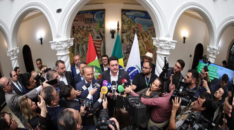 Os governadores Carlos Massa Ratinho Junior e Jorginho Mello assinaram nesta quarta-feira (06), em Florianópolis, o termo de transação judicial entre Paraná e Santa Catarina para quitação de uma dívida referente a royalties de petróleo da Petrobras que se arrasta desde 1991. O pagamento será realizado por meio de obras em Garuva (SC), beneficiando também Itapoá (SC), na divisa com Guaratuba. Entre elas está a duplicação de 19 quilômetros da rodovia SC-417, desde a BR-101 e o Contorno Sul da cidade catarinense, além da construção de três viadutos.