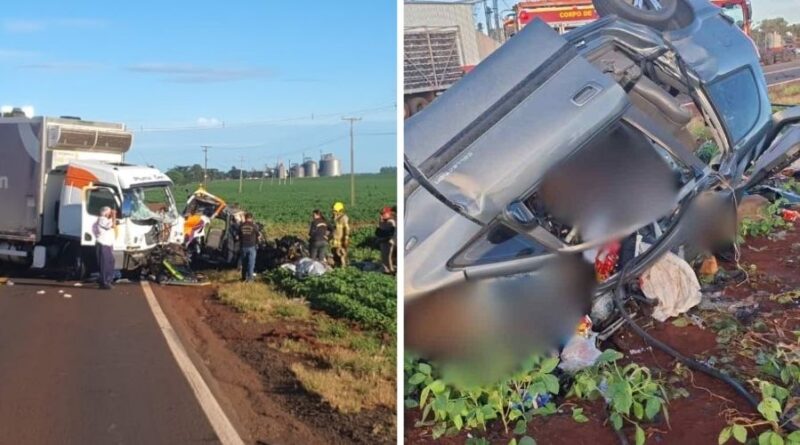 Seis pessoas da mesma família morrem em colisão entre carro e caminhão na PR-170, em Rolândia