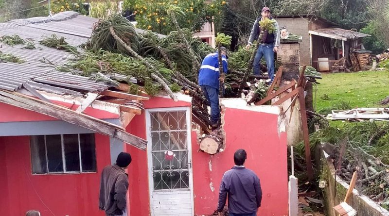 Tempestade e vendaval deixam casas danificadas e sem energia
