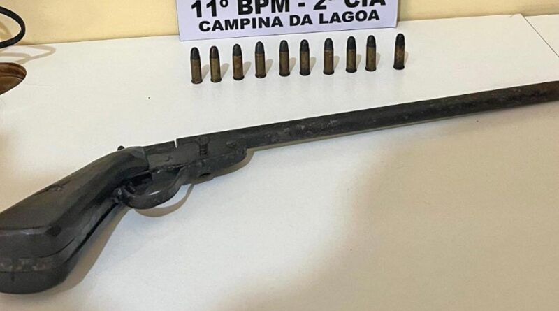 Arma e munições são apreendidas nos fundos de residência em Campina da Lagoa