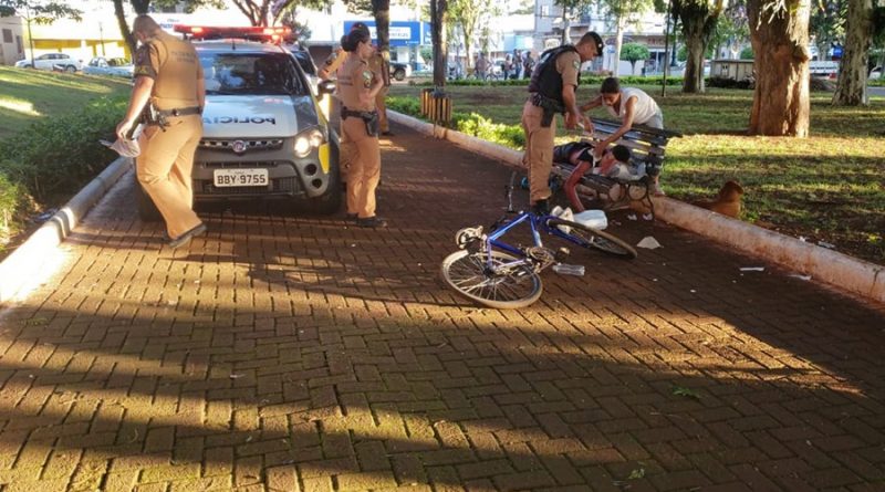 Após ingerir bebida alcoólica em um bar no centro de Campo Mourão, um casal envolveu-se em uma briga na Praça São José. A confusão teria começado porque um homem teria “cantado” a mulher, o que gerou ciúmes no companheiro dela. Como ambos estavam armados com facas, a briga terminou com os dois feridos, assim como também a mulher, que segurava uma criança de dois anos.