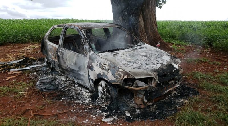 Corpo carbonizado é encontrado em carro ainda em chamas em Campo Mourão