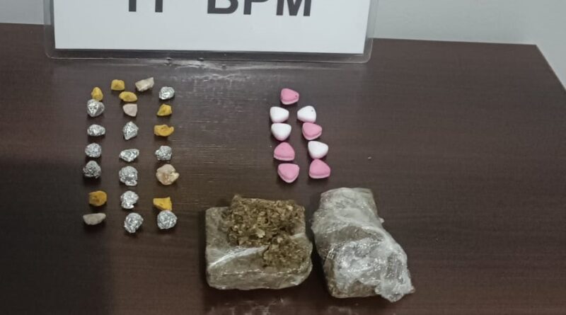 No local indicado, os policiais abordaram o acusado, que confessou a prática do tráfico. Durante a busca domiciliar, foram apreendidos nove comprimidos de LSD, 52 gramas de maconha e 4,3 gramas de crack, além de embalagens utilizadas para fracionamento de drogas e objetos de procedência duvidosa.