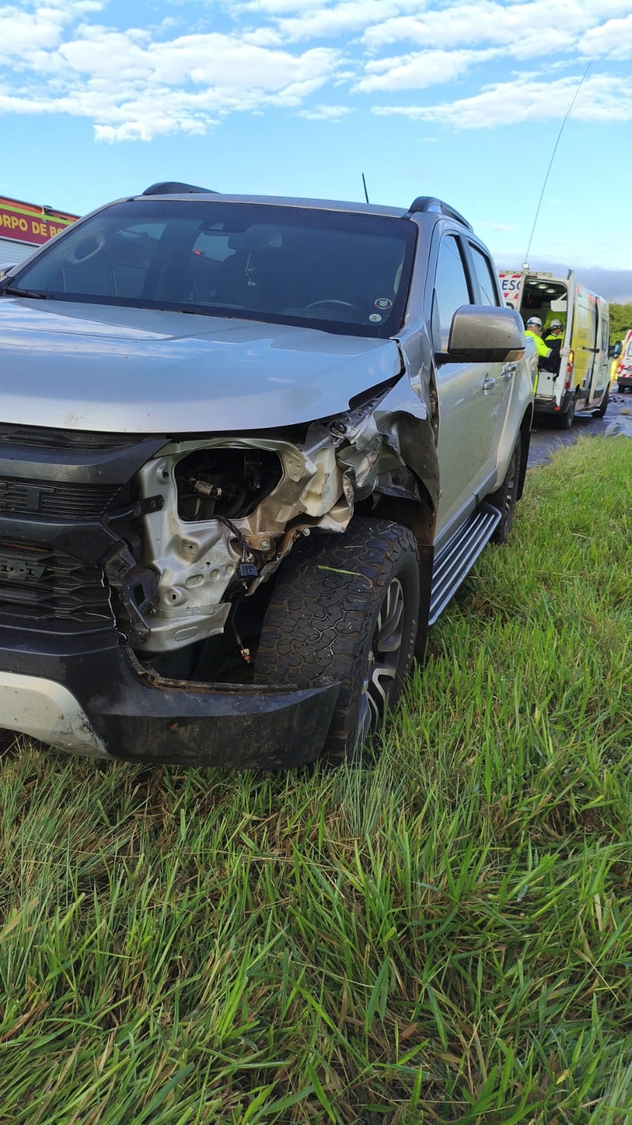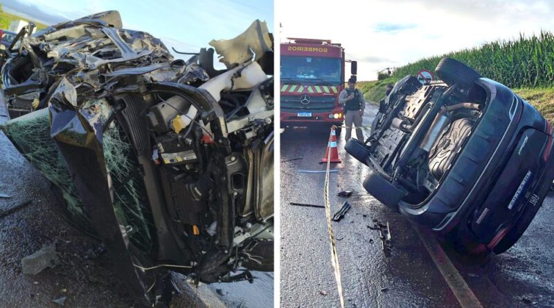 Com a força da batida, o condutor do Gol ficou preso às ferragens do carro. O automóvel ficou completamente destruído. Outras duas pessoas que estavam no veículo ficaram feridas, uma delas em estado grave. Com a força do impacto, o Fastback tombou. Segundo a PM, havia droga no carro. O motorista fugiu do local antes da chegada das equipes. Já o condutor do caminhão perdeu o controle da direção após a batida e saiu da pista, parando em meio a uma lavoura de milho. Destroços dos veículos ficaram espalhados pelo local.