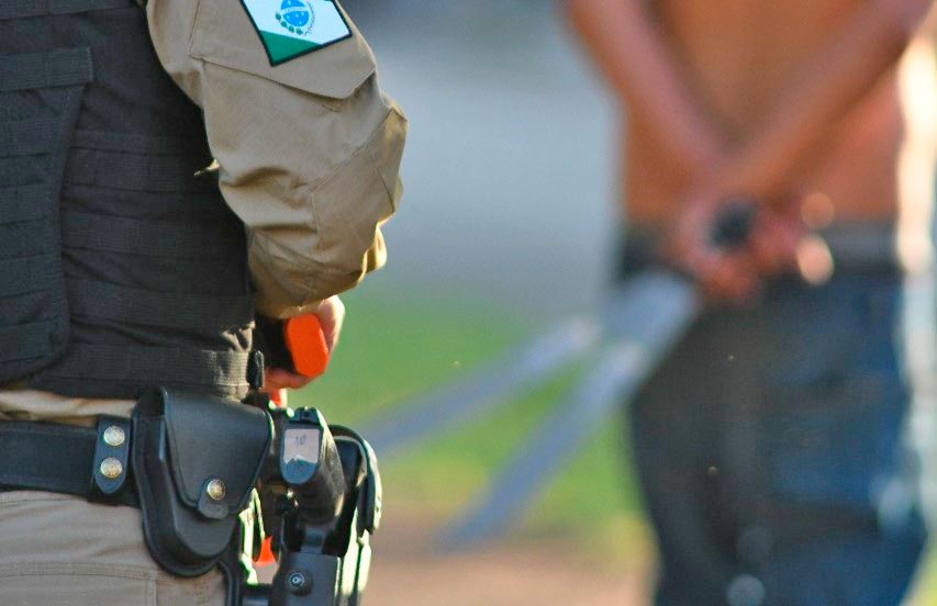 Diante da resistência, a PM aguardou uma oportunidade segura para intervir. “Após constatarmos que, de fato, ele não ia soltar essas armas brancas de maneira voluntária, foi feita, então, a utilização de um protocolo de intervenção de menor potencial ofensivo”, informou o tenente. Foram utilizados uma arma de incapacitação neuromuscular (Taser 10) e munições de impacto controlado de espingarda calibre 12. “Conseguimos fazer, então, após essa intervenção, a retirada dos facões da mão desse jovem”, completou.