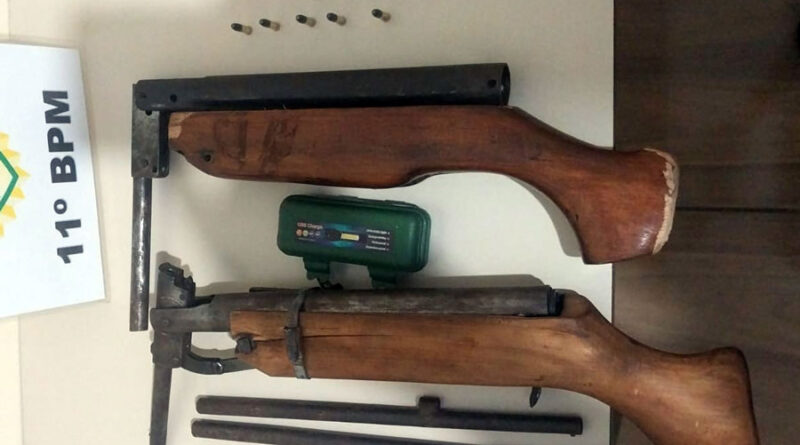 Foram encontradas, ainda, diversas peças que seriam utilizadas, conforme a PM que atendeu o caso, para fabricação de outra arma de fogo. Diante dos fatos, o autor recebeu voz de prisão e foi encaminhado à delegacia de Polícia Civil competente, para providências cabíveis.
