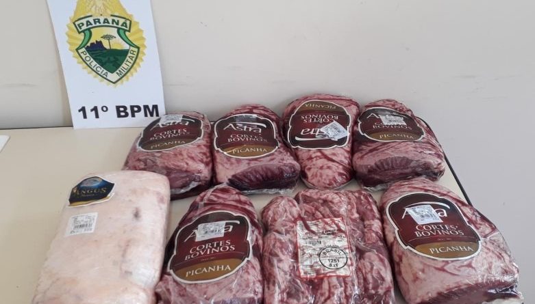 A Polícia Militar foi acionada na tarde deste sábado (19) pelo fiscal de um supermercado no centro de Campo Mourão após um homem furtar algumas peças de picanha embaladas, avaliadas em cerca de R$ 500,00. Ele foi abordado pelos funcionários no estacionamento e tentou fugir.
