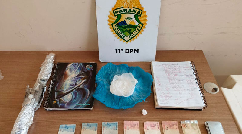 A Polícia Militar chegou ao local e, após abordarem o suspeito, o pai da adolescente entregou à equipe um pacote azul contendo a substância. O homem de 28 anos admitiu que o pacote era de cocaína e que havia retido o celular da jovem como pagamento pela droga. Durante revista no imóvel, os policiais encontraram uma balança de precisão, um rolo de papel alumínio, dois cadernos com anotações sobre vendas de drogas, R$ 86 em espécie e 98 gramas de cocaína.