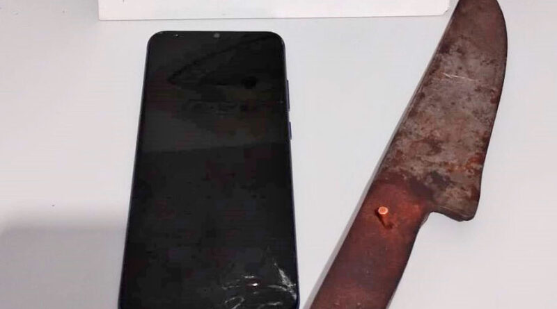 Em seguida fugiu deixando o local. Com base nas informações e características repassadas pela vítima, os policiais iniciaram buscas e localizaram o homem em via pública. Durante a abordagem, foi encontrada uma faca na cintura dele, com lâmina de cerca de 15 centímetros, além de um celular em seu bolso.