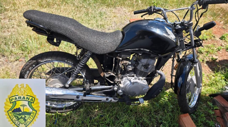 Uma motocicleta furtada foi recuperada por uma equipe da Polícia Militar (PM) na manhã desta quinta-feira (8), em Ubiratã, após ser localizada parcialmente desmontada dentro de um quarto de uma residência no bairro Vila Recife. Dois homens foram presos durante a ação, sendo que um deles possuía mandado de prisão em aberto.
