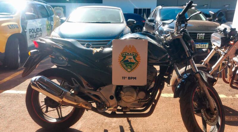 Ao realizar a consulta aos sistemas informatizados da PM, foi constatado que a motocicleta havia sido furtada no dia 12 de junho deste ano, em Campo Mourão. Além disso, a equipe verificou que a numeração do chassi estava suprimida, o que levantou suspeitas de que o veículo possa ter sido utilizado em um homicídio ocorrido anteriormente na região.
