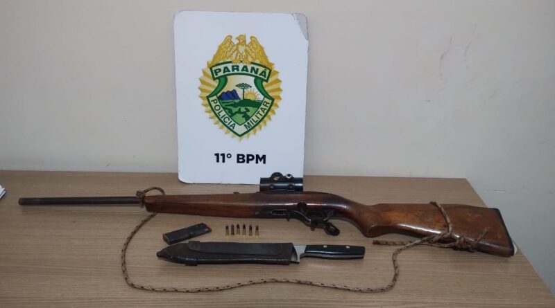 Uma equipe da Polícia Militar (PM) de Campo Mourão apreendeu uma carabina marca CBC, calibre .22, equipada com red dot e municiada com seis munições intactas, na noite dessa terça-feira (7). A ação policial aconteceu durante a Operação Segurança Rural e resultou também na prisão do motociclista que tentou se desfazer da arma, arremessando-a em meio a uma plantação, ao avistar a viatura policial.
